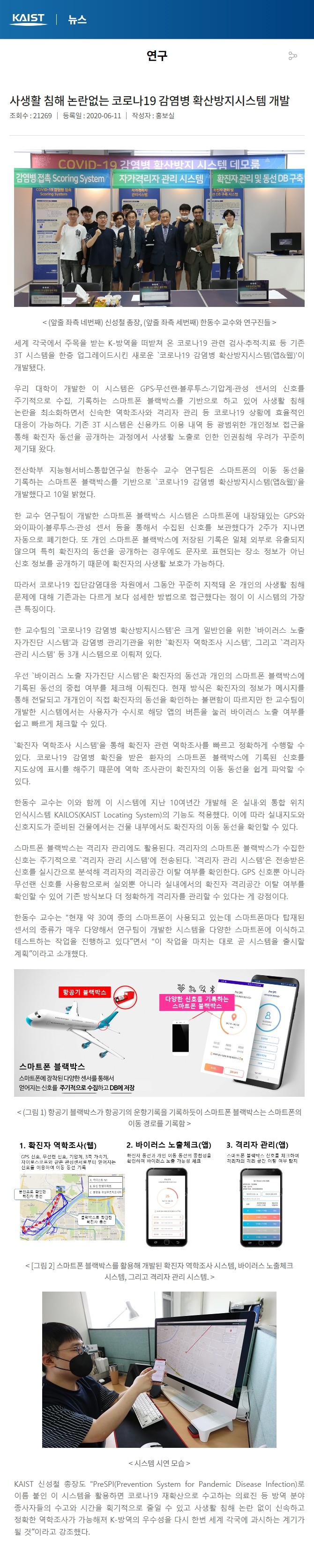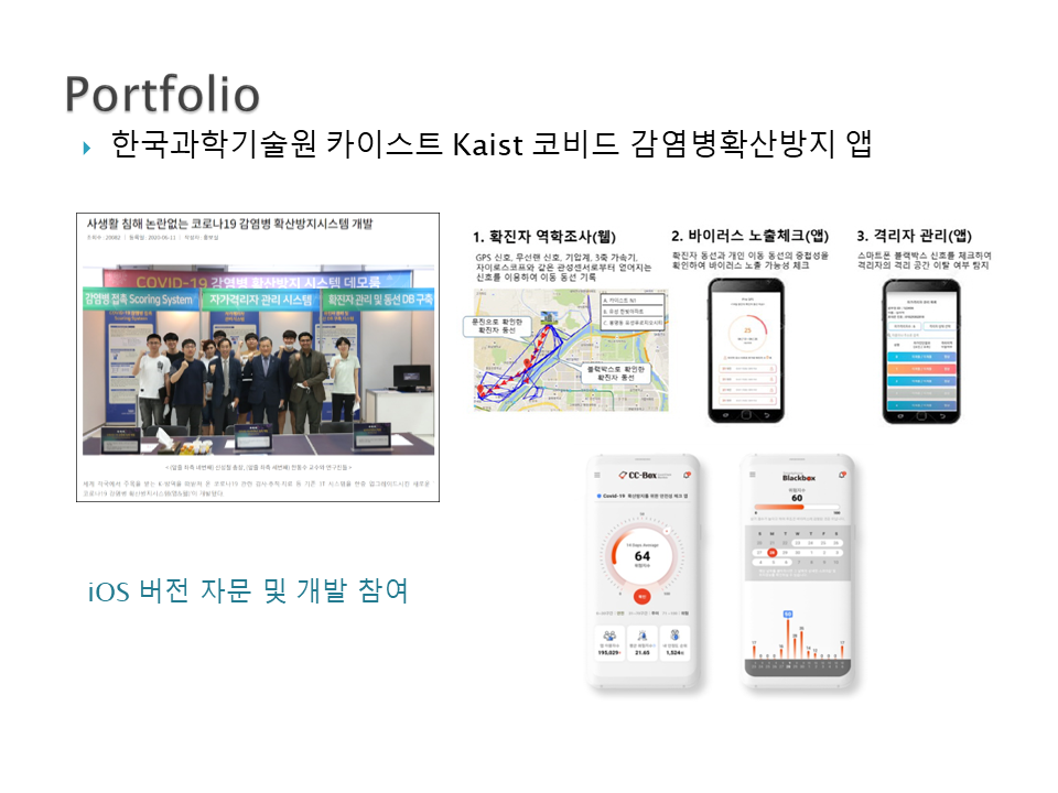모바일앱 : 코로나 감염확산방지 KAIST 카이스트 객원연구원 참여