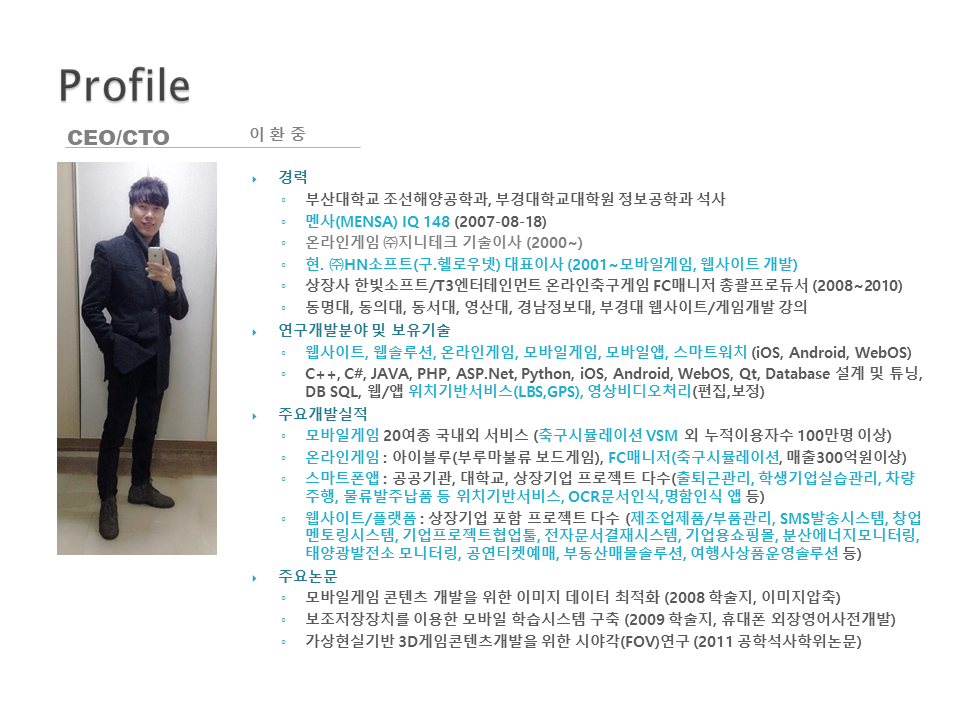 (부산대학교 공대 졸, 공학석사, 멘사 Mensa IQ 148 개발자 대표)