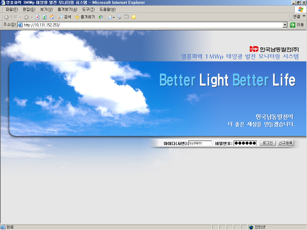 한국남동발전 영흥 태양광발전소 웹모니터링 시스템