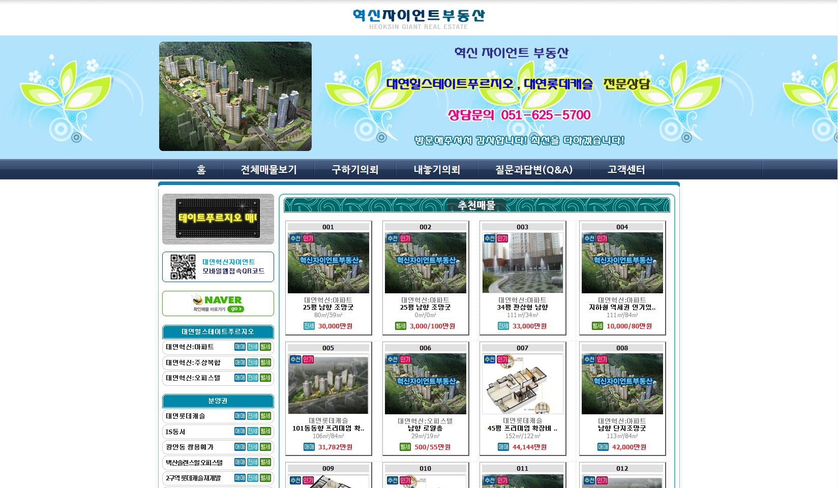 부동산중개업소 대연혁신자이언트부동산 http://6255700.okland.kr2013-10 - HN소프트 자체개발 부동산중개업소 홈페이지 솔루션 1호점 - 강력한 매물분류 관리기능 - 아파트 단지정보 표준화